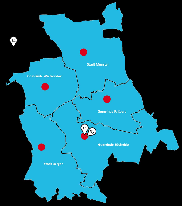 Karte mit von der LAG beschlossenen LEADER-Projekte (ab 2023)